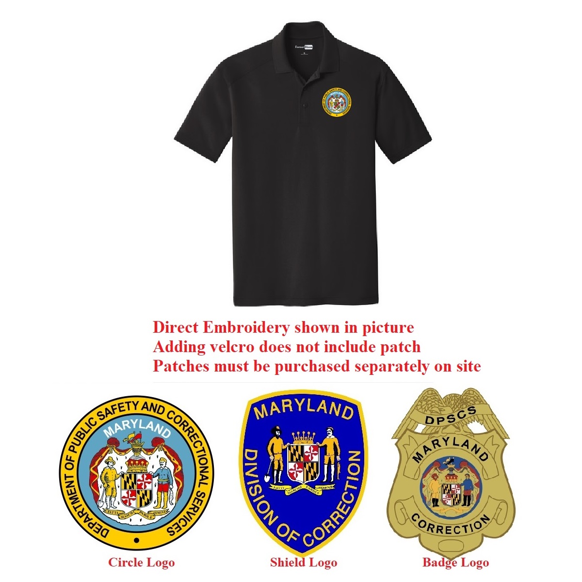 | Logo (direct embroidery) | No Logo, Circle Logo, Shield Logo, Badge Logo |