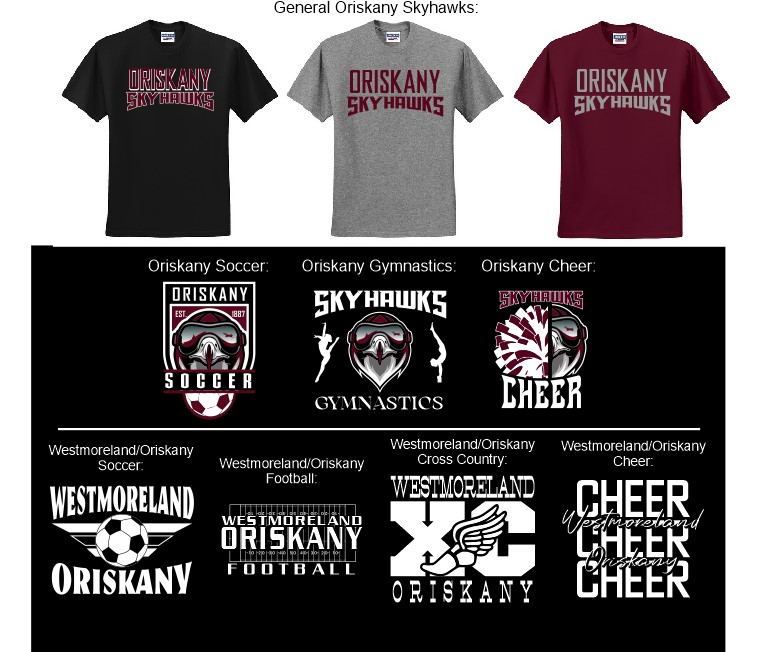 Pick Your Design | Oriskany Skyhawks, Oriskany Soccer, Oriskany Gymnastics, Oriskany Cheer, Westmoreland Oriskany Soccer, Westmoreland Oriskany Football, Westmoreland Oriskany Cross Country, Westmoreland Oriskany Cheer |