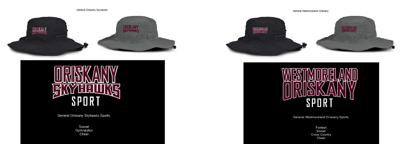 Pick Your Design | Oriskany Skyhawks (no sport), Oriskany Soccer, Oriskany Gymnastics, Oriskany Cheer, Westmoreland Oriskany (no sport), Westmoreland Oriskany Football, Westmoreland Oriskany Soccer, Westmoreland Oriskany Cross Country, Westmoreland Oriskany Cheer |