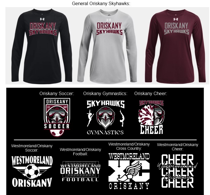 Pick Your Design | Oriskany Skyhawks, Oriskany Soccer, Oriskany Gymnastics, Oriskany Cheer, Westmoreland Oriskany Soccer, Westmoreland Oriskany Football, Westmoreland Oriskany Cross Country, Westmoreland Oriskany Cheer |